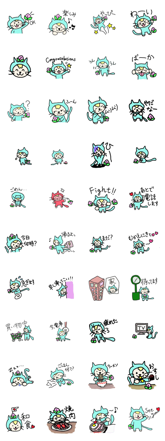 白ネコのあいうえお・・・ってるスタンプ