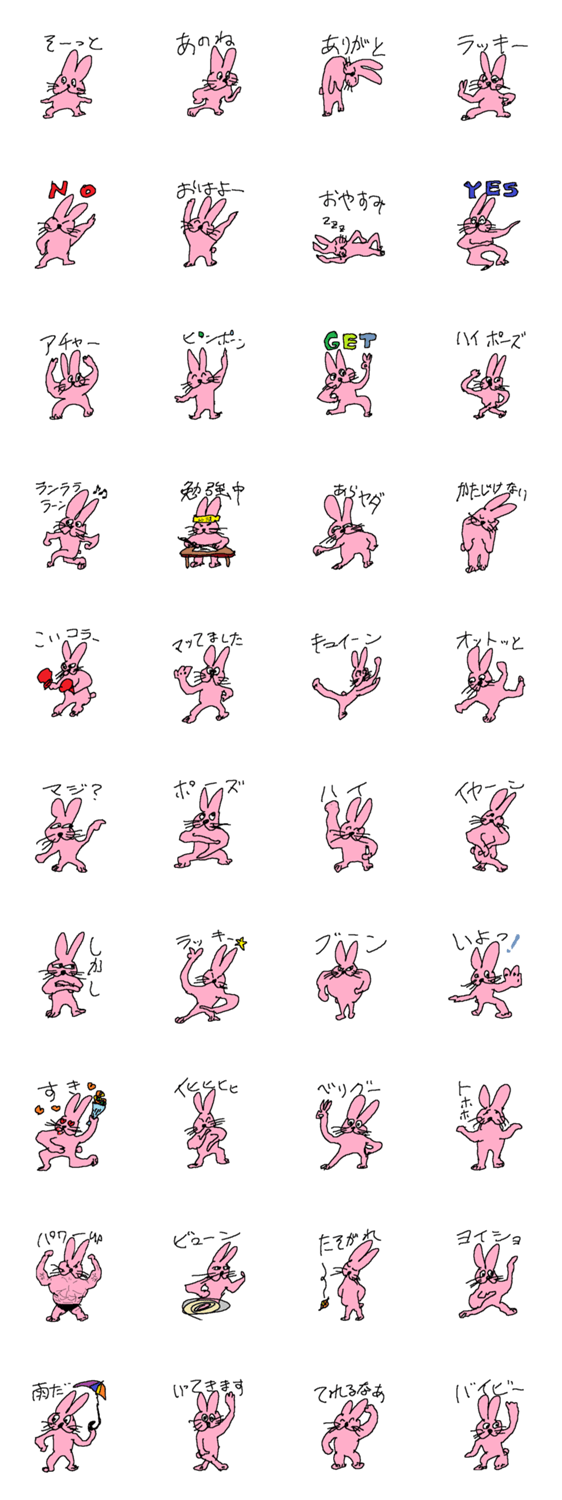 可愛くて小憎しい”うさぴょん”が、様々なポーズで、あなたの気持ちを伝えるお手伝いをします。