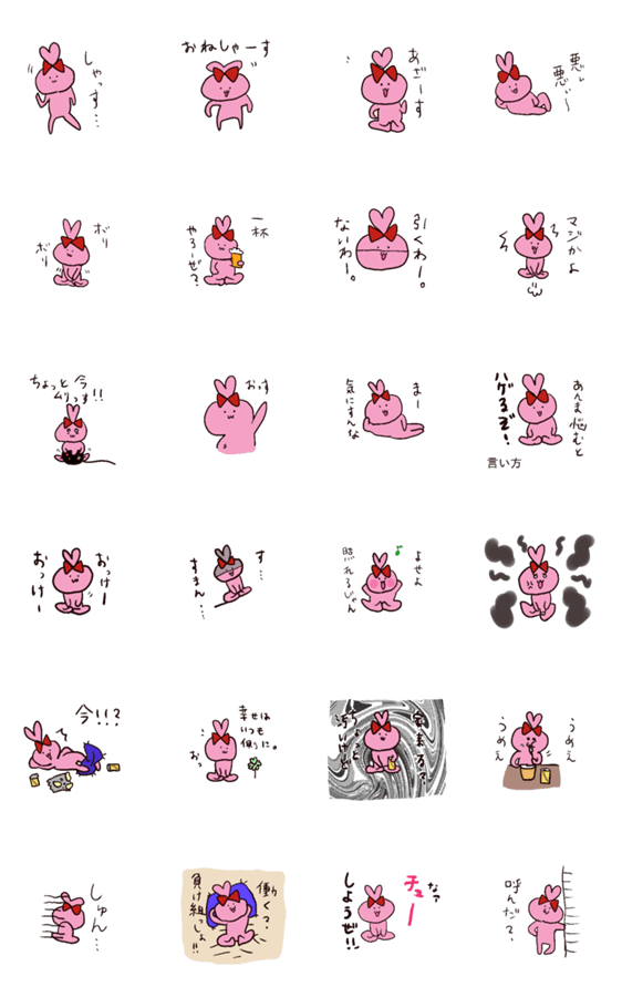 胡座をかいた女子力なんて微塵もないウサギのスタンプ。 男らしさも感じられる振り切った女子力のなさ!新世代のウサギの登場です