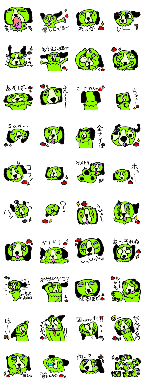 | スタンプ説明 | 「可愛い」「おもしろ」「使いやすい」緑の動物・犬?・・・ミドリ~ィヌ!!友達、家族、カップル、誰とでも楽しく使ってくださいワン(๑≧౪≦) |