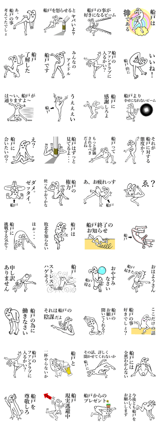 | スタンプ説明 | 名前が【船戸/ふなと】さんのスタンプ。船戸/フナト/ふなちゃん/フナチャン/船戸君/ふなどくん/フナドクン/ふなっち/フナッチ/ふなりん/フナリン/ふなるん/フナルン/さんへ |