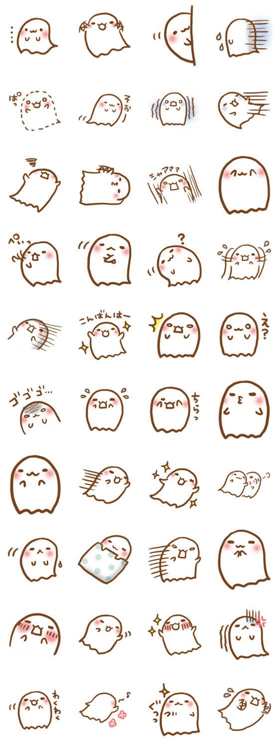 | スタンプ説明 | オバケだけど全然怖くありません。寧ろ癒し系。夏にひんやりどうぞw |