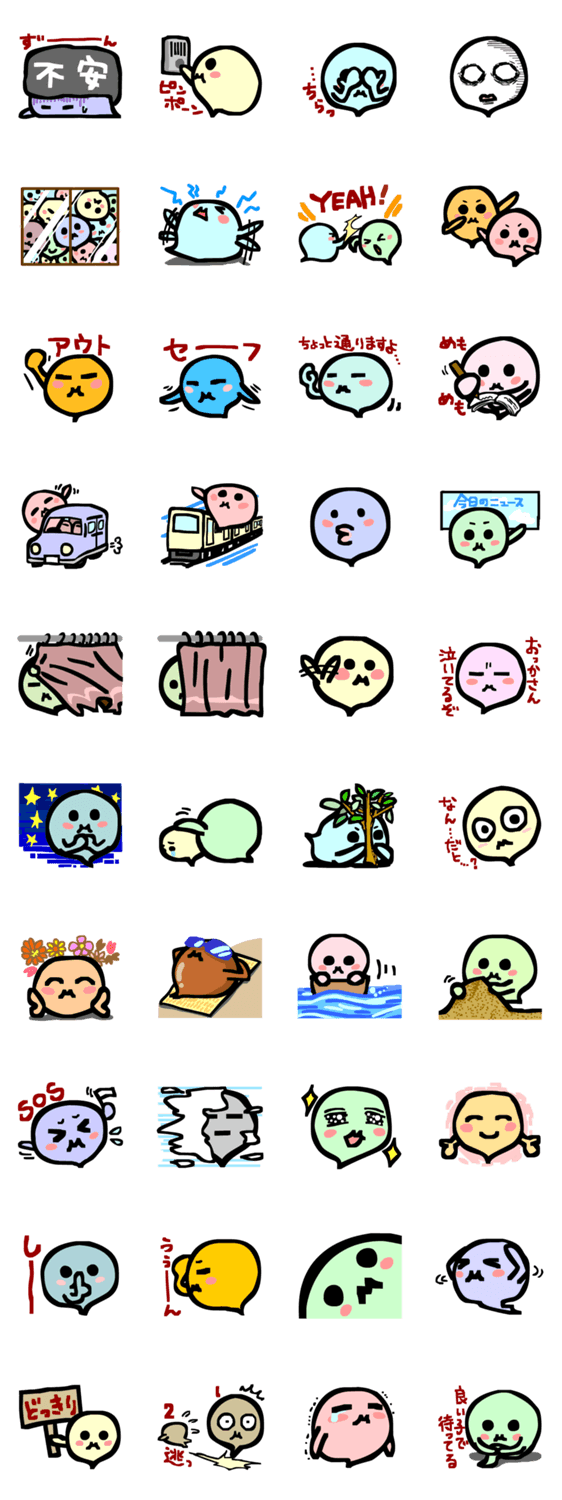 表情豊か、シンプルで可愛い「ばるーん」たちが生き生きと生きています。
