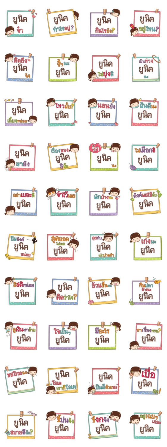 | スタンプ説明 | This sticker is made for chatting with "UNIQUE". "UNIQUE" will be glad to see it. |