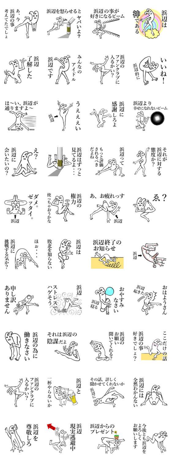 | スタンプ説明 | 名前が【浜辺/はまべ】さんスタンプ。浜辺/ハマベ/はまちゃん/ハマチャン/浜辺君/はまなべくん/ハマナベクン/はまっち/ハマッチ/はまりん/ハマリン/はましー/子猫旅館 |