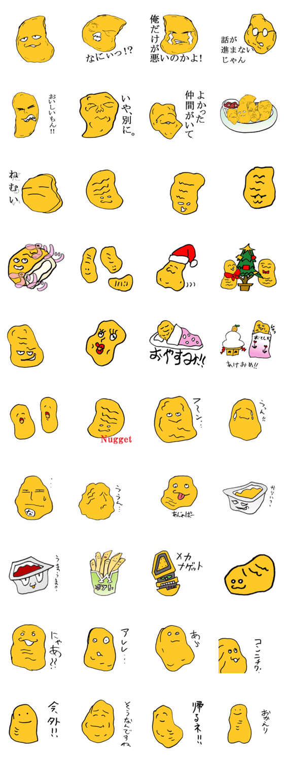 | スタンプ説明 | みんなの大好きなナゲットのスタンプです。よろしくどうぞ。 |