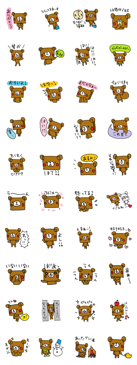 いろんな会話に使える!四角いクマのスタンプ。つぶれたわけではありません。元々四角いのです。