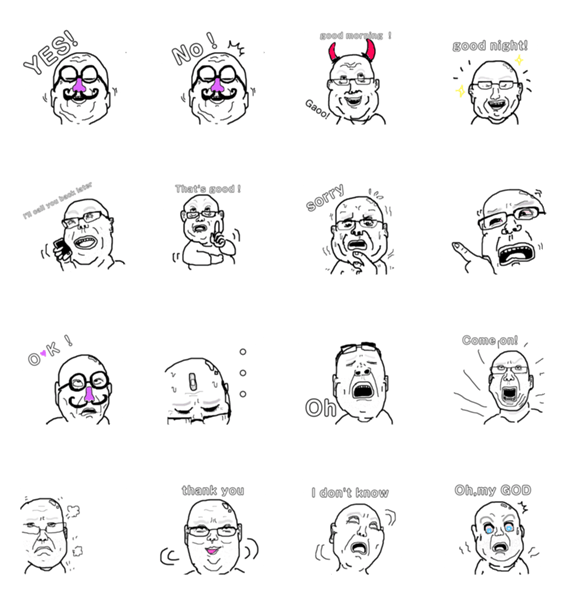 キャラ立ちした大人の漢のスタンプです。こういう大人になりたいものです。