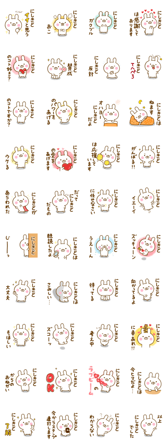 ゆる~く、かわいい、うさぎ(うさひな)の☆にしきど☆錦戸が使う名前スタンプです♪