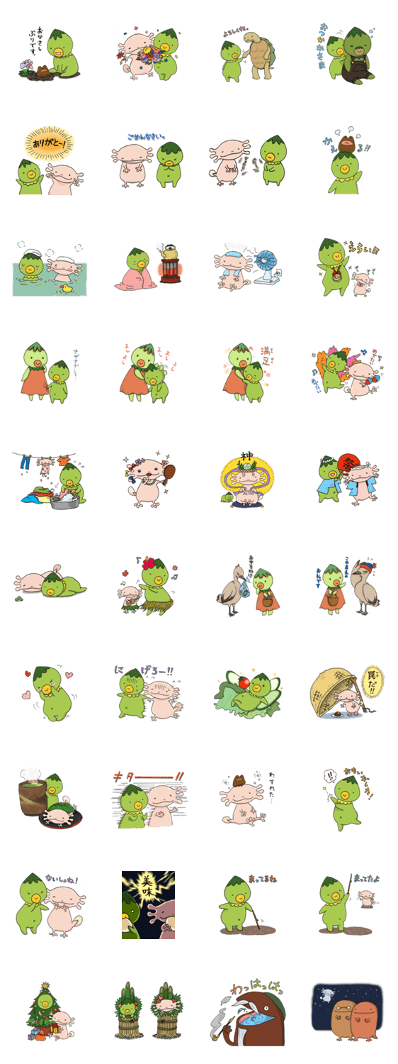 第2弾。カッパの子供かるぴんとオオサンショウウオの赤ちゃん、ぱるぱーです。