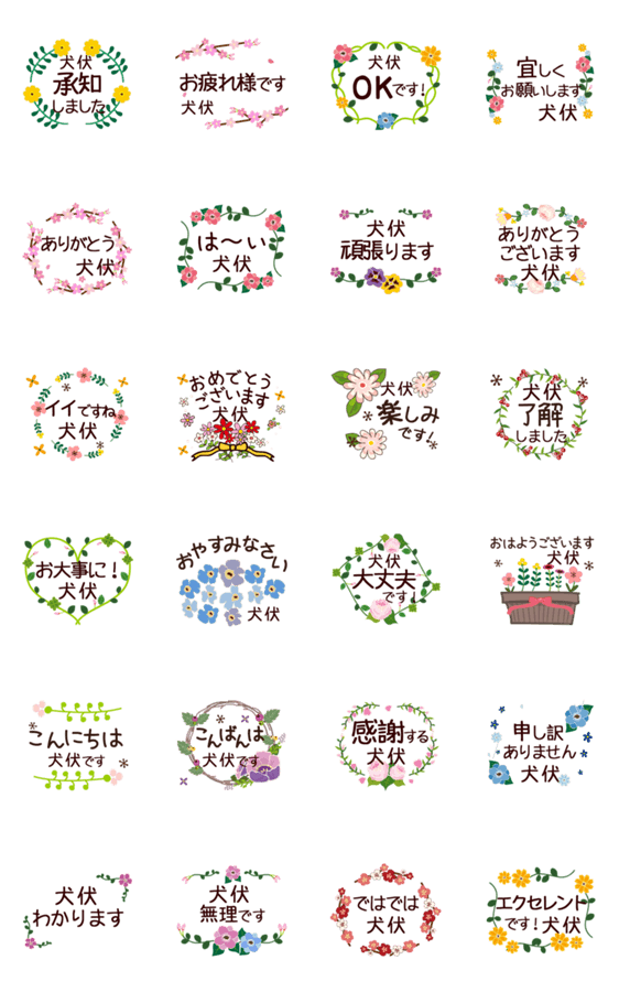 「犬伏」の花のスタンプ丁寧な日常会話。