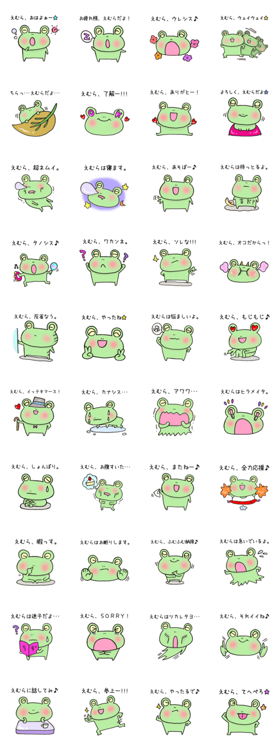 | スタンプ説明 | えむらさん専用スタンプです。全世界のえむらさん、応援よろしくおねがいします。(江村 えむら エムラ 惠村 枝村 榎村) |