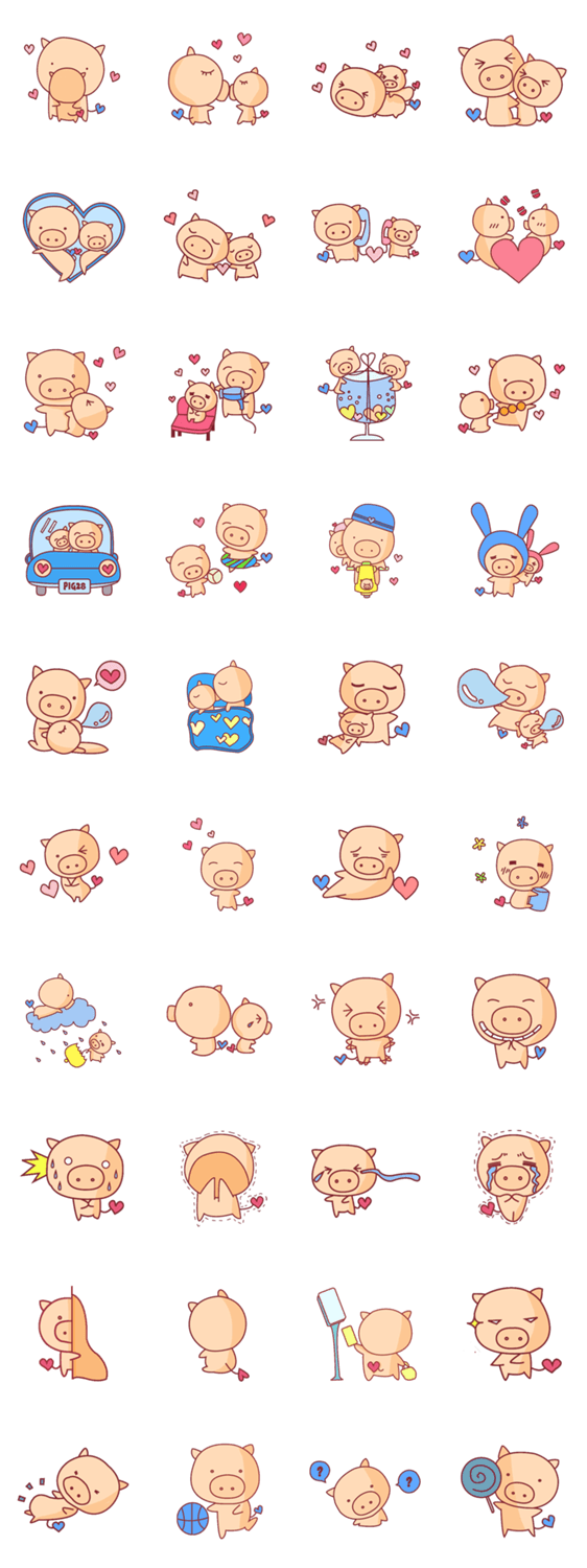 | スタンプ説明 | Love Love Pig. A small pig fell in love with a big pig. |