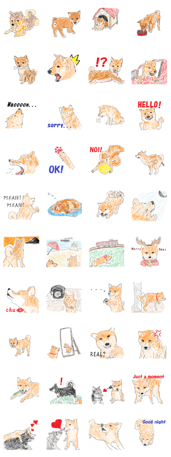 日本の天然記念物である柴犬。アニメっぽくなく、リアルすぎず。絵本タッチのスタンプです。どこか可愛らしいそんなスタンプを是非ご利用ください。