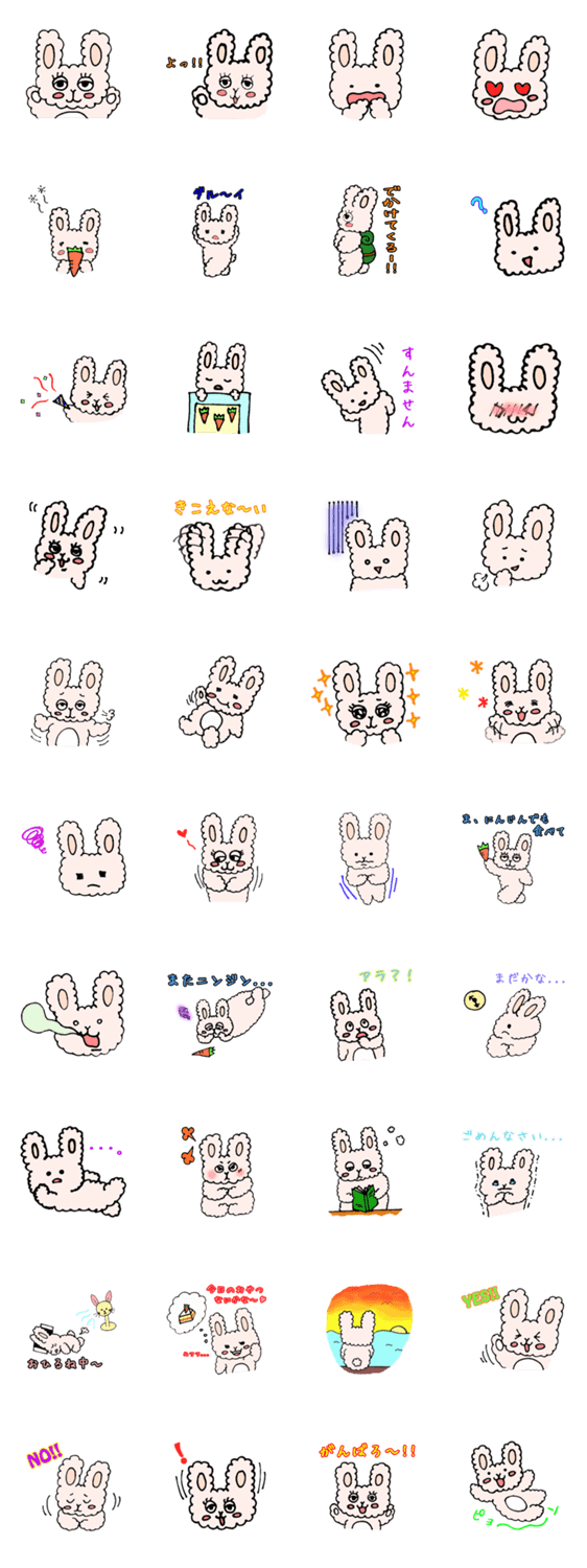 スタンプ説明 ニンジン大好きうさぎのうさこだよ。