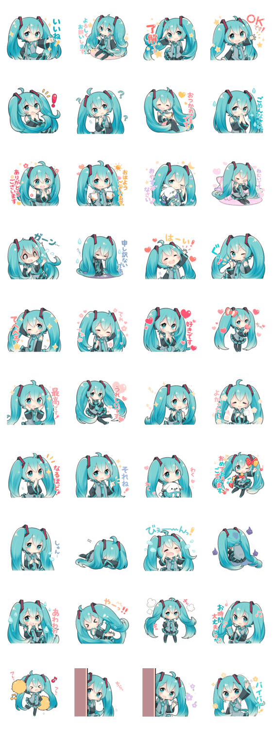 初音ミクの毎日使える丁寧なゆるい敬語スタンプです。家族や友達、恋人と毎日一緒に使えるリアクションや挨拶がたくさんはいっています。一年の限定配信です♪