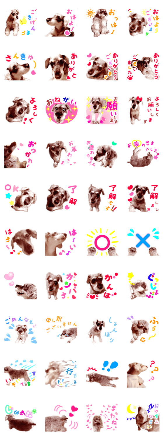 可愛い女の子向け♡ワンちゃん動物好きの方。わんこペットを飼いたい方。犬のミニチュア・シュナウザーのティファニーちゃんの写真スタンプです。