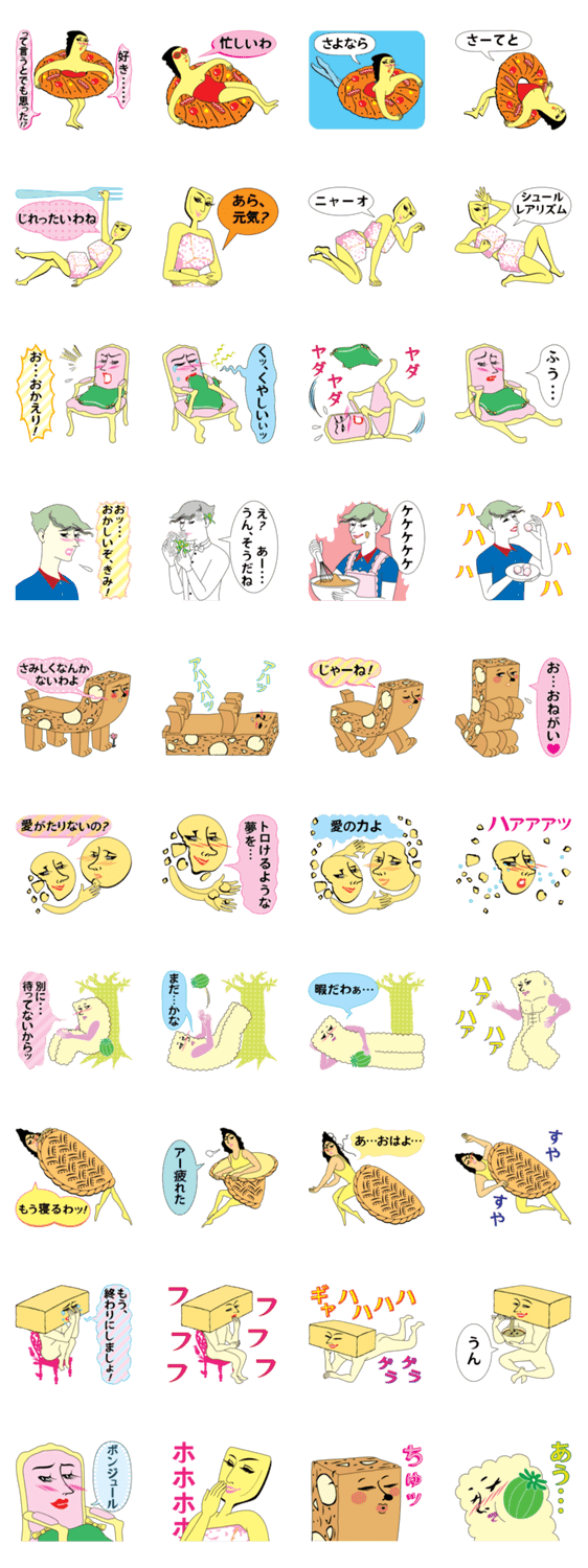 ざえもんことNANAE HASSAKUによる郷土菓子キャラクターがいよいよスタンプに!色んな国のお菓子たちがあんなポーズやこんなセリフで登場です!!