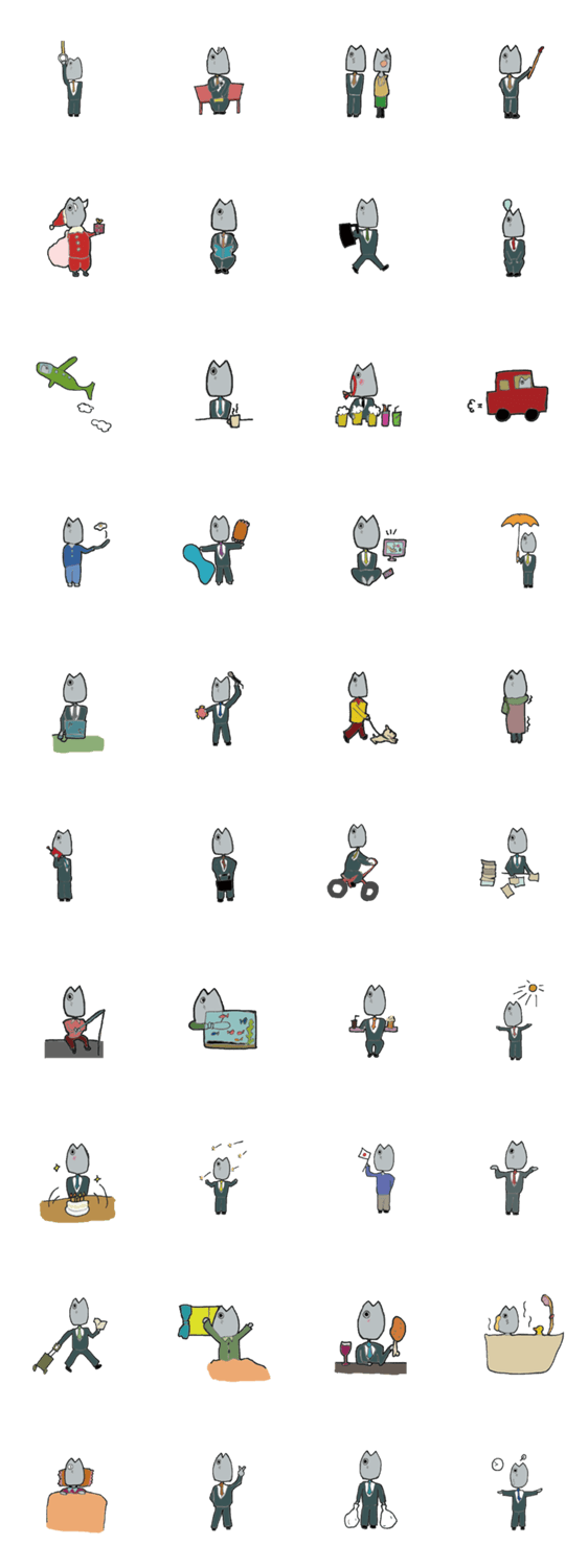 白ネコのあいうえお・・・ってるスタンプ