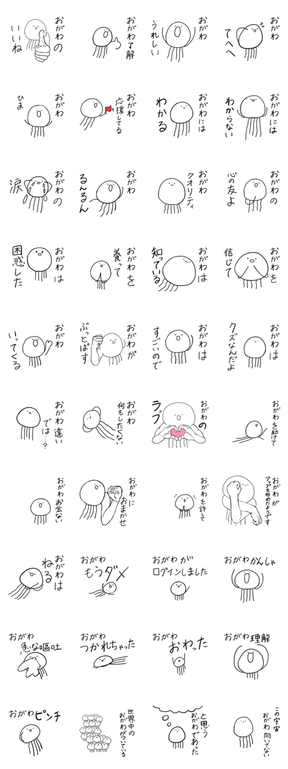 | スタンプ説明 | 【くらげ〇〇(ご自身の名前)】で検索してね!たまに筋肉質になるくらげのスタンプ。名字(苗字)が、おがわ、オガワ、小川、小河、緒川さんなど。ぽりごろー/クラゲ |