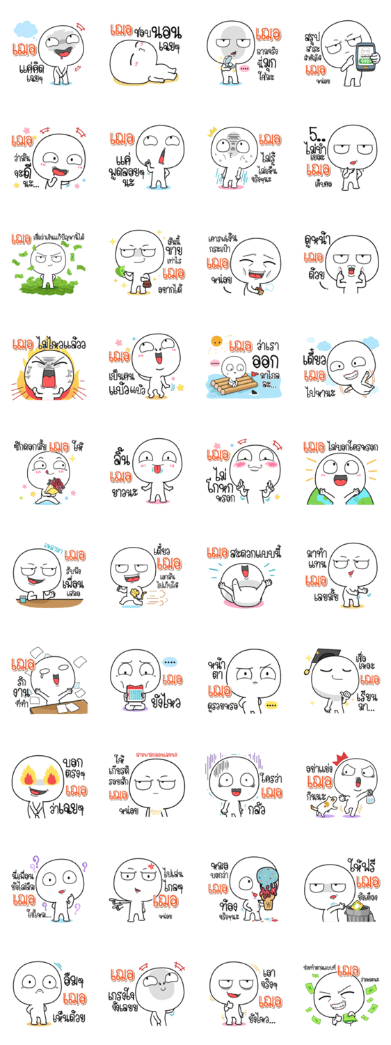 白ネコのあいうえお・・・ってるスタンプ