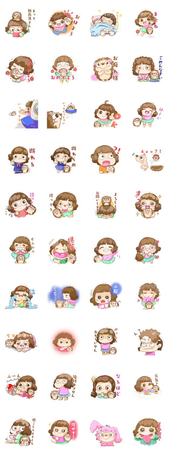 ゆるゆるハリネズミ?と女の子【日常会話】 -LINEスタンプマニア