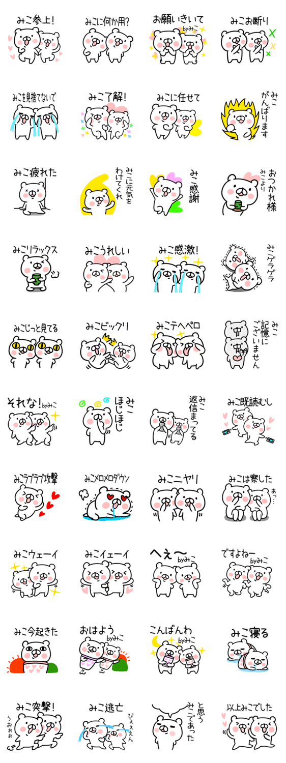 しろくてこまるい(クマ・くま)の無難な日常会話「みこ」専用のあだ名&名前スタンプです。(もるきゅた作)