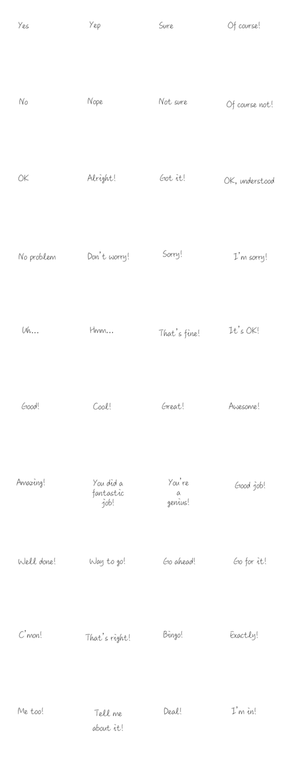 | スタンプ説明 | Commonly used responses and praise in white Line style speech bubbles. |