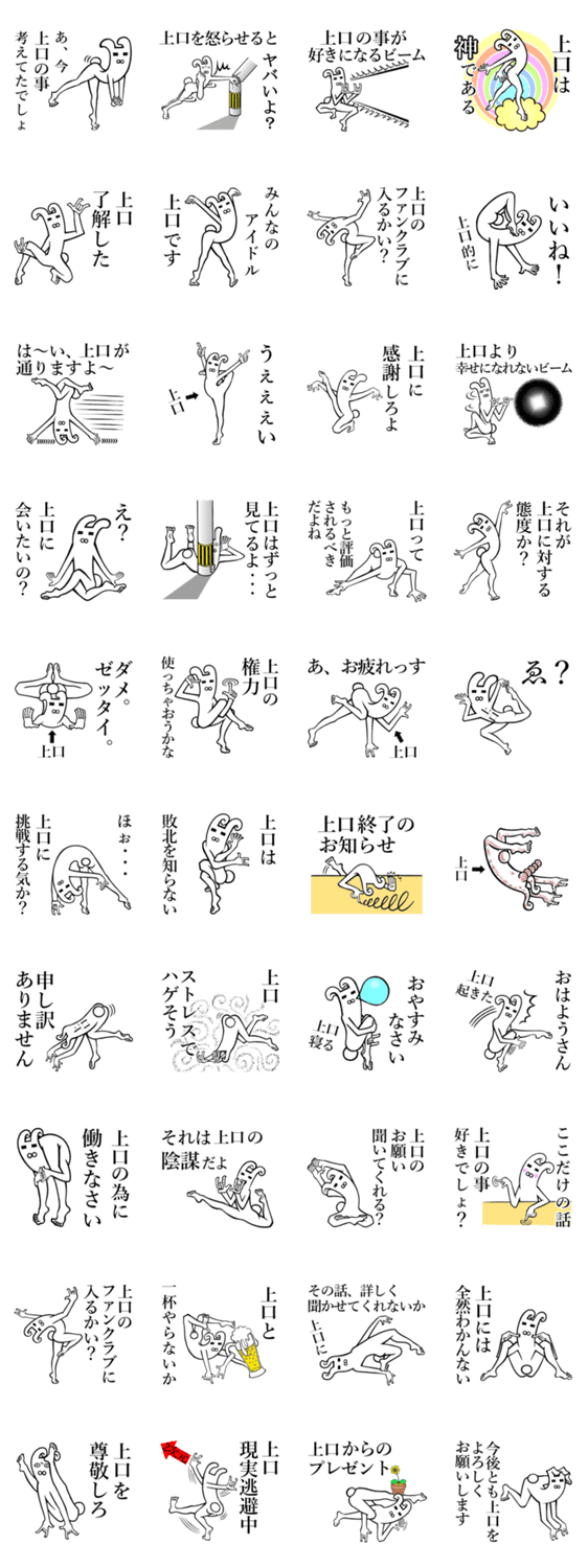| スタンプ説明 | 名前が【上口/かみぐち】スタンプ。上口/カミグチ/かみちゃん/カミチャン/上口君/うえぐちくん/ウエグチクン/うえくち/ウエクチ/うわぐち/ウワグチ/かみくち/子猫旅館 |