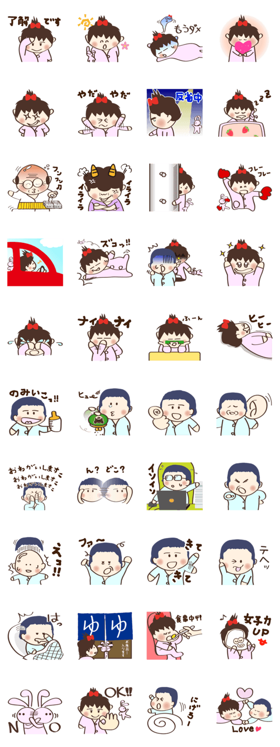 言動はどこか大人っぽいけど、見た目は赤ちゃんのキュートスタンプ。日常のやりとりの中で癒し癒されてみてはいかがでしょうか。