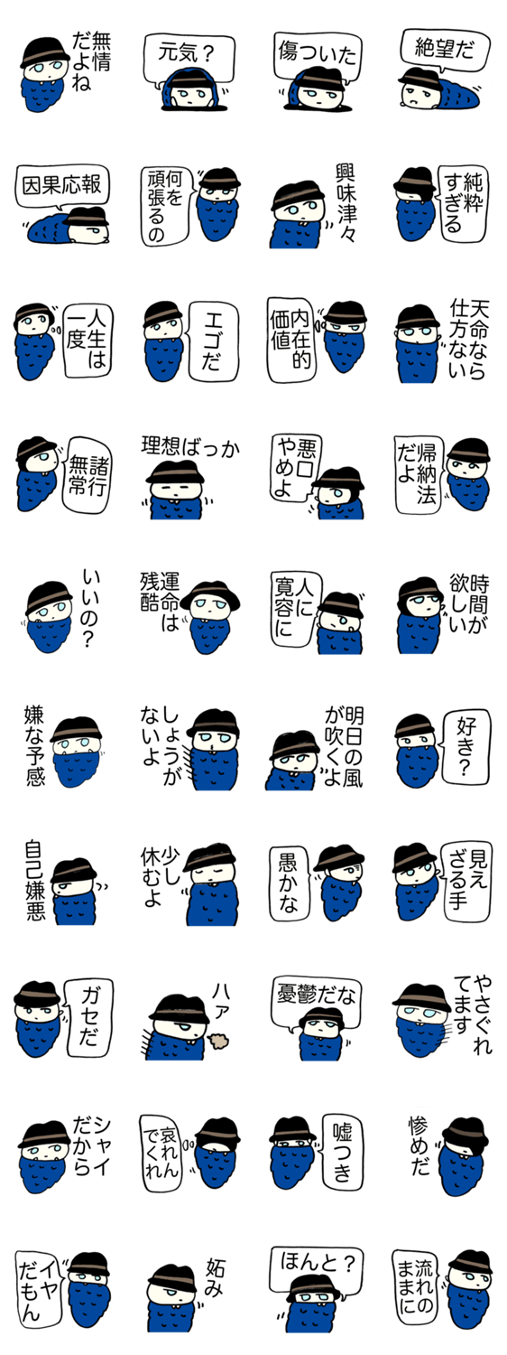 フッと現れて詩人のような言葉を発する謎のミノムシのスタンプ。