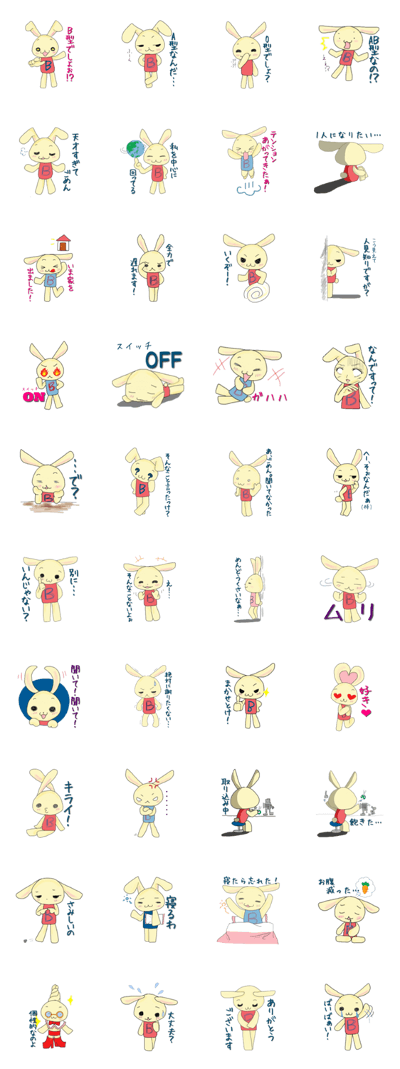 B型あるあるをスタンプにしました・・・変わったもの好きのB型さんのためのスタンプです