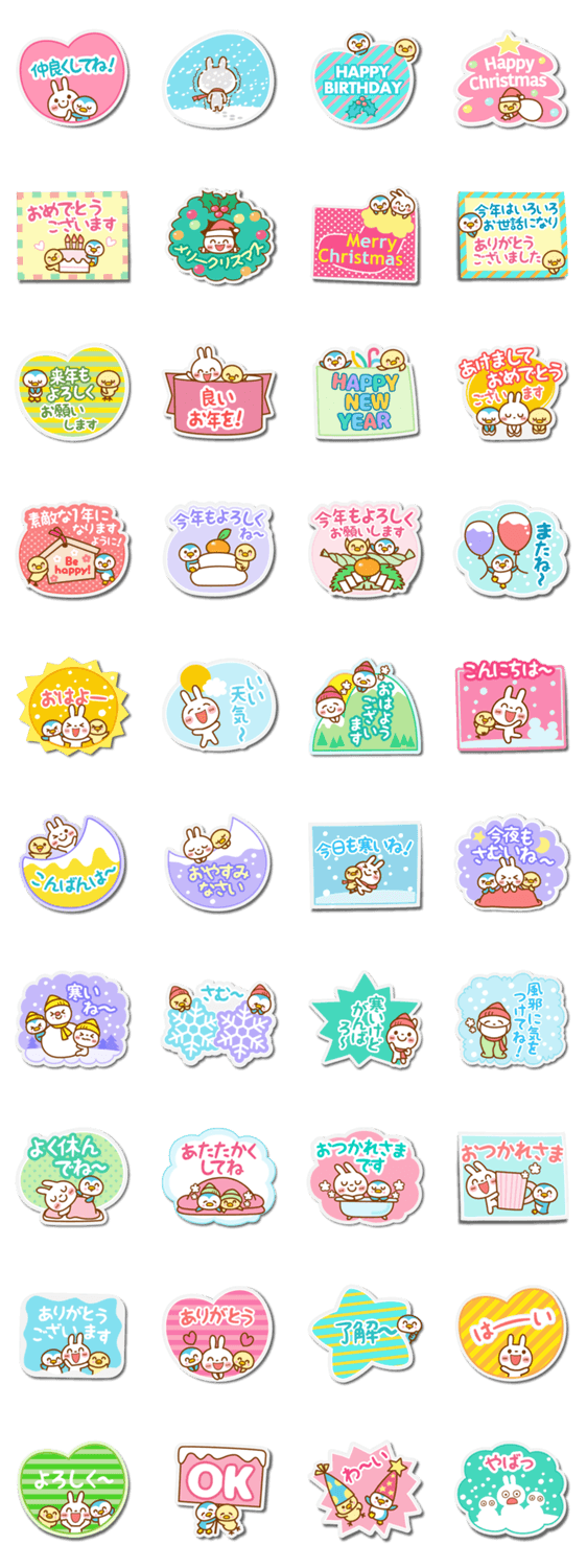 | スタンプ説明 | ペタッと可愛く使える、フレークシールのスタンプです♩ よく使う言葉を「冬のセット」にしました♬ クリスマス・お正月・年末年始・お祝いの挨拶付き! |