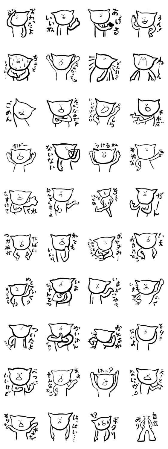 名前は「しんさく」。ゆるくておもしろいねこのスタンプです。会話に困ったらしんさくを呼んでみよう!