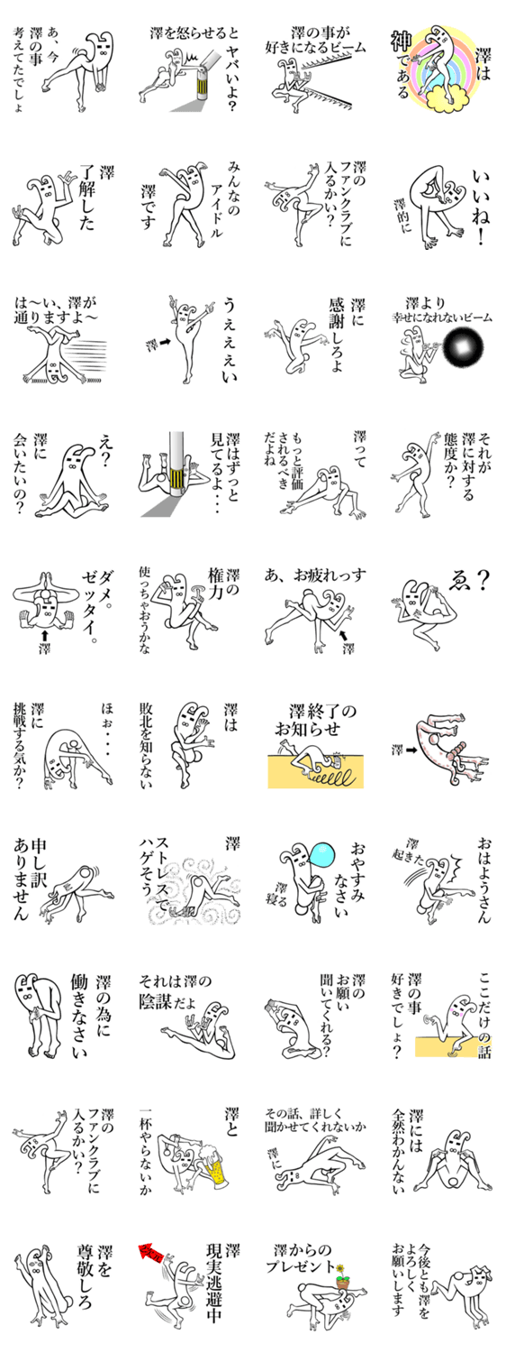 | スタンプ説明 | 名前が【澤/さわ】スタンプ。澤/サワ/さわちゃん/サワチャン/澤君/さわくん/サワクン/たく/タク/やなぎさわ/ヤナギサワ/さわっち/サワッチ/さわりん/サワリン/子猫旅館 |