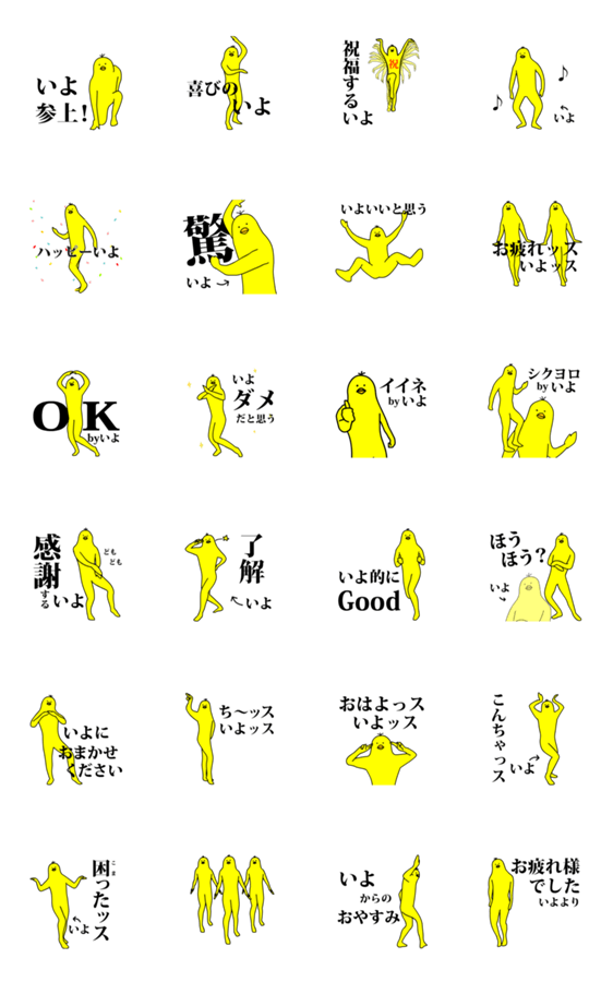 「いよ」の激しく動く黄色い鳥