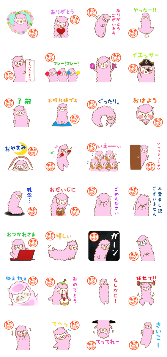 あやさんが使える可愛いアルパカの名前スタンプです。