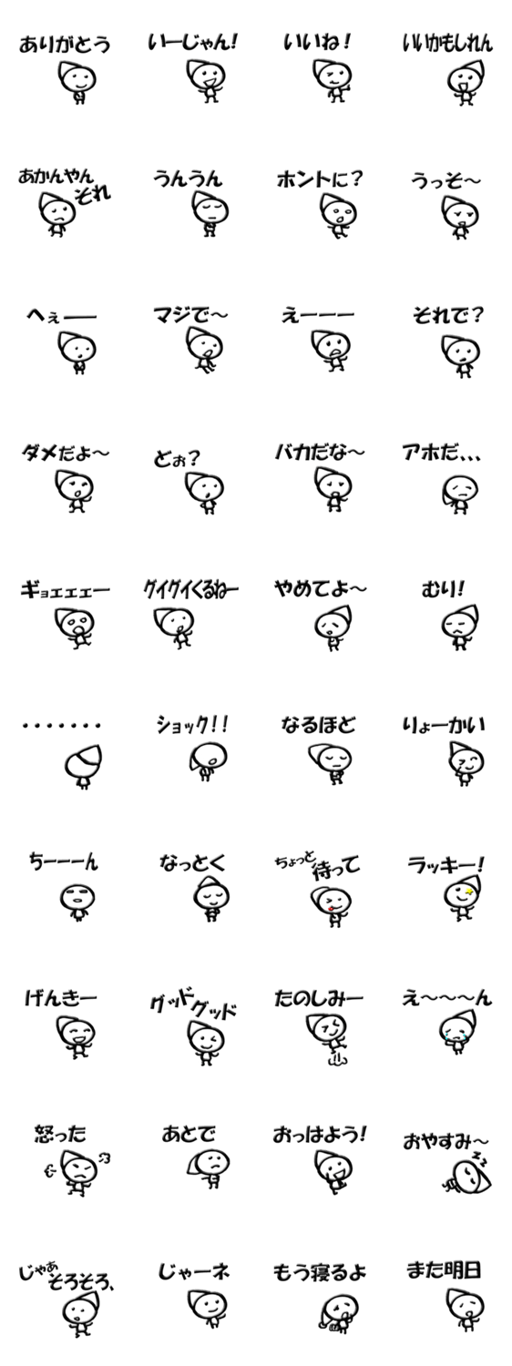 チョコペンで描いたような線画と文字です。ワンスタンプで簡単に会話を楽しんで下さい。線画なのでスクリーンに直接描いた感じになります。背景が黒でも認識できます。