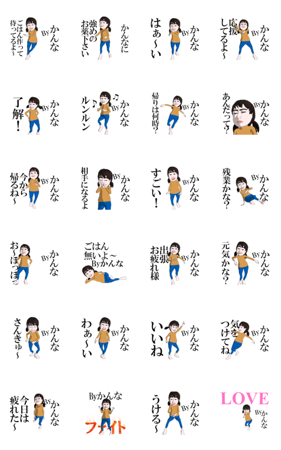 | スタンプ説明 | スタンプショップで希望名を「○○回転」で検索,カンナ,KANNA,佳奈,佳音那,侃那,冠花,加杏菜,勘名,勘茄,叶渚,叶菜,和奈,堪茄,夏杏菜,奏,奏奈,奏愛,奏桜,奏渚,奏 |