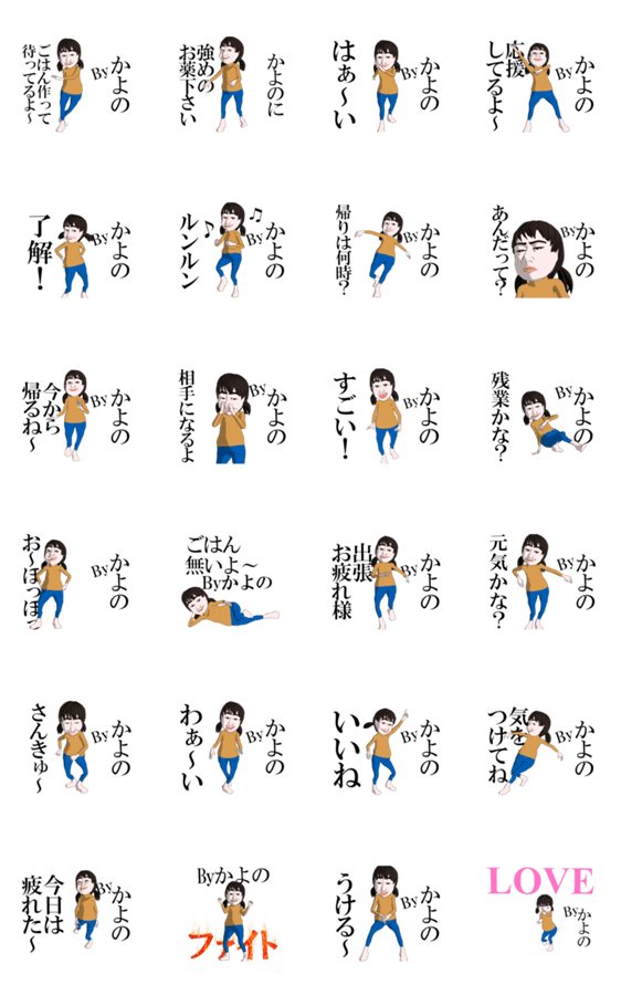 | スタンプ説明 | スタンプショップで希望名を「○○回転」で検索,カヨノ,KAYONO,花世乃,花代乃,香世乃,香世野,香代乃,香代野,香夜乃,香夜野 |