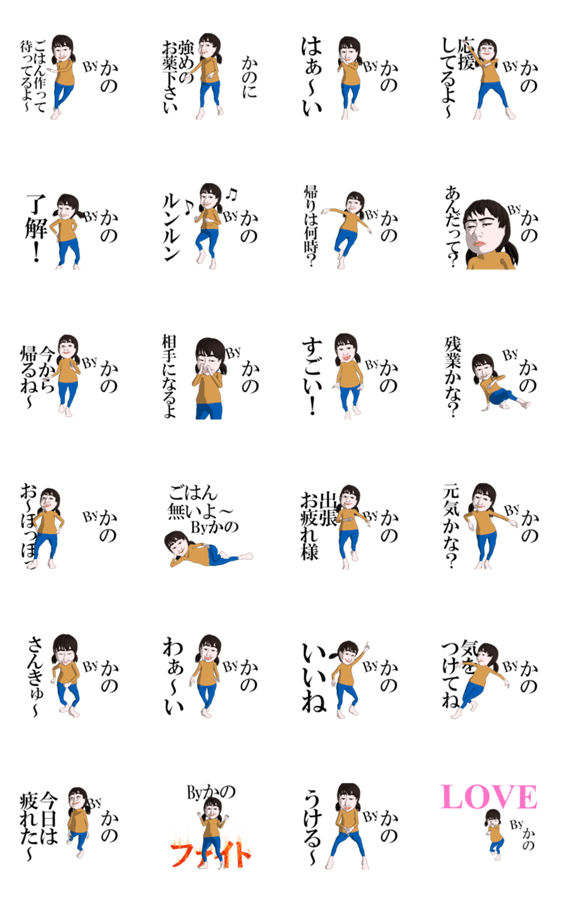 | スタンプ説明 | スタンプショップで希望名を「○○回転」で検索,カノ,KANO,伽乃,佳乃,佳之,佳星,佳納,佳野,兼乃,加乃,可乃,可野,叶,叶乃,叶希,叶望,和音,嘉乃,嘩乃,圭乃,夏 |