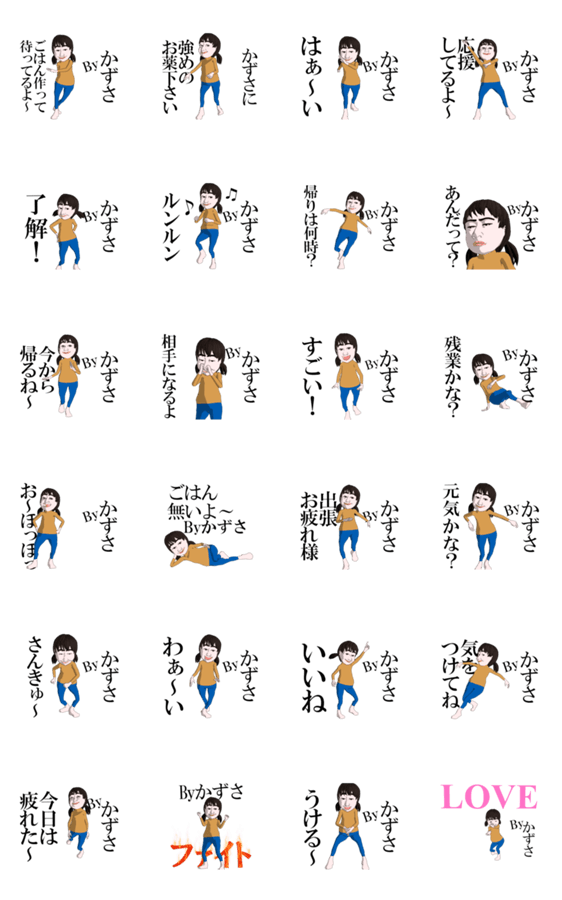 | スタンプ説明 | スタンプショップで希望名を「○○回転」で検索,カズサ,KAZUSA,一佐,一咲,一嵯,一桜,一櫻,一沙,一砂,一紗,倭沙,冬紗,加寸紗,千咲,千嵯,千紗,和佐,和咲,和嵯,和彩 |