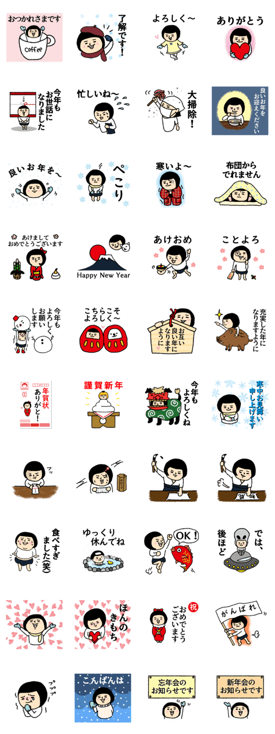 冬に使えるおかっぱブルマちゃんのスタンプです!メインは 年末年始!!