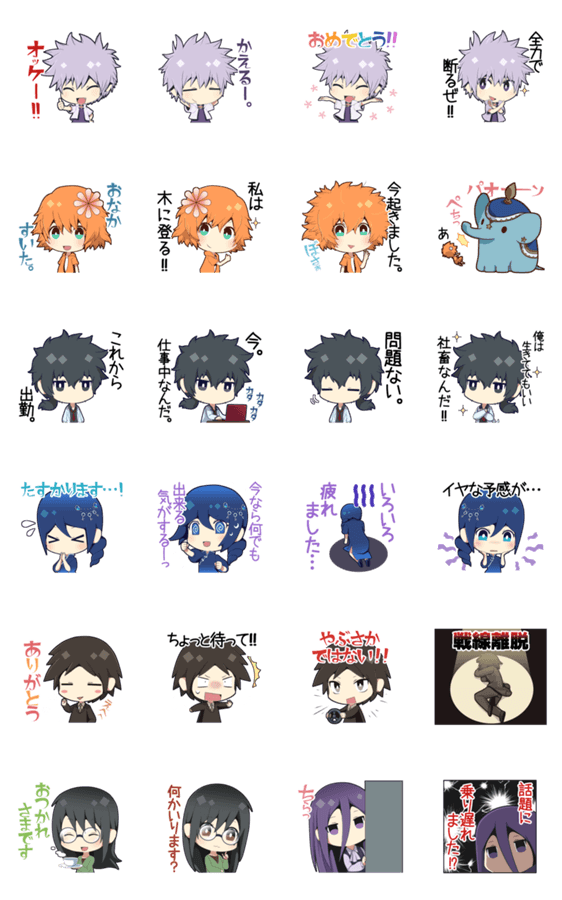 クトゥルフ神話TRPG(CoC)をプレイした身内のキャラクターのスタンプです。