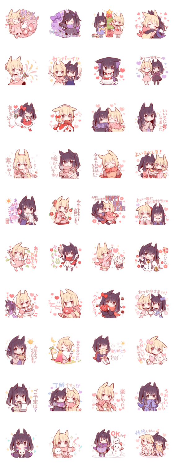 うさみみ少女たちのクリスマス・大晦日、お正月スタンプです。冬に使えるリアクションや挨拶が沢山入っています。