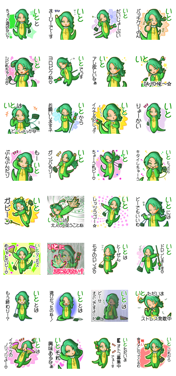 | スタンプ説明 | ゆっけ。が贈る【いと】用名前スタンプ15です。友達や恋人とのやりとり、グループの連絡にぜひ。《きぐるみじょし》04「バブルなヘビねーさん」のスタンプです。 |