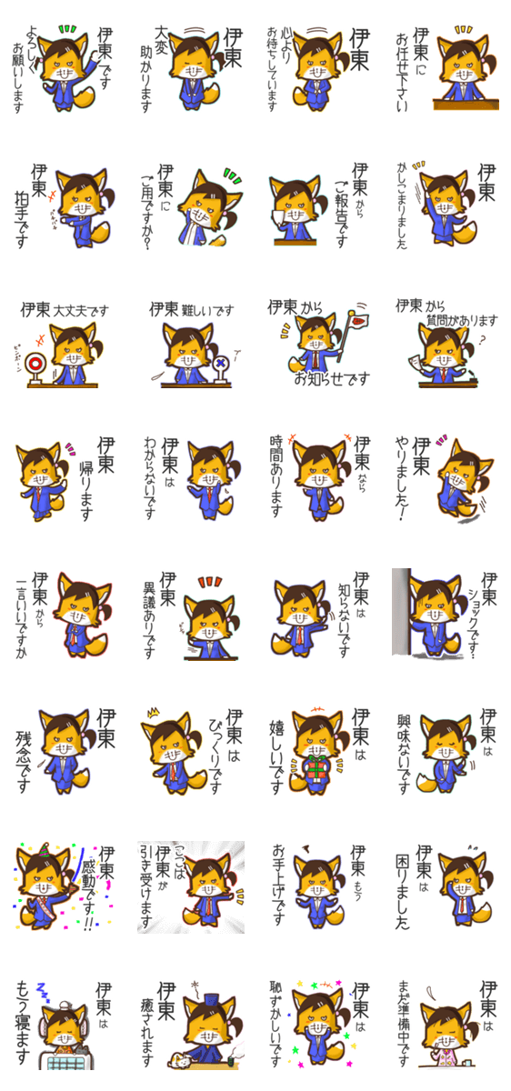 | スタンプ説明 | ゆっけ。が贈る【伊東】用名前スタンプ07です。友達とのやりとり等に。《ゆっけ。のアニぱ!》07「きつねのてんくー姉妹・妹くーこ」です。 |