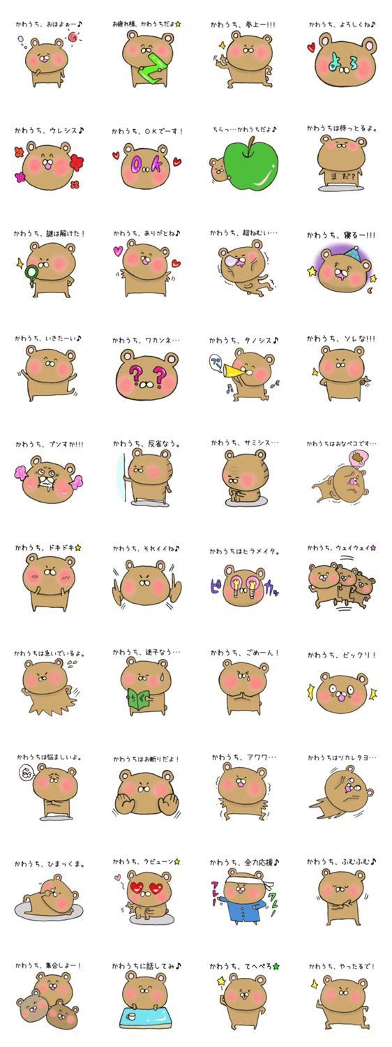 | スタンプ説明 | かわうちさん専用スタンプです。全世界のかわうちさん、応援よろしくおねがいします。(川内 河内 かわうち カワウチ) |