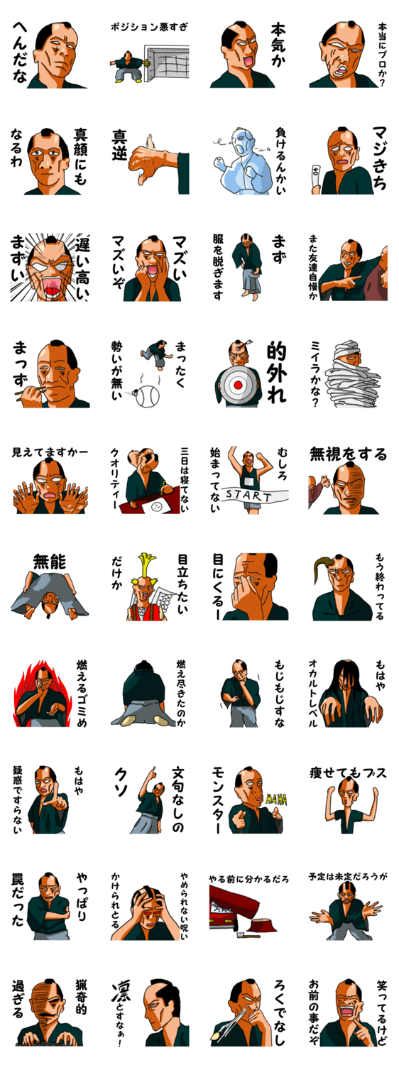 | スタンプ説明 | 罵倒人生で最高の侍 使用感を重視して並べているので必ずしも50音順にはなっておりませんのでご注意ください。 |