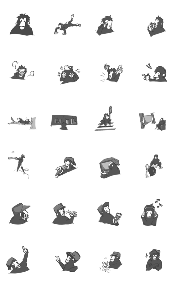 【07】モノクロ・エイプ -LINEスタンプマニア